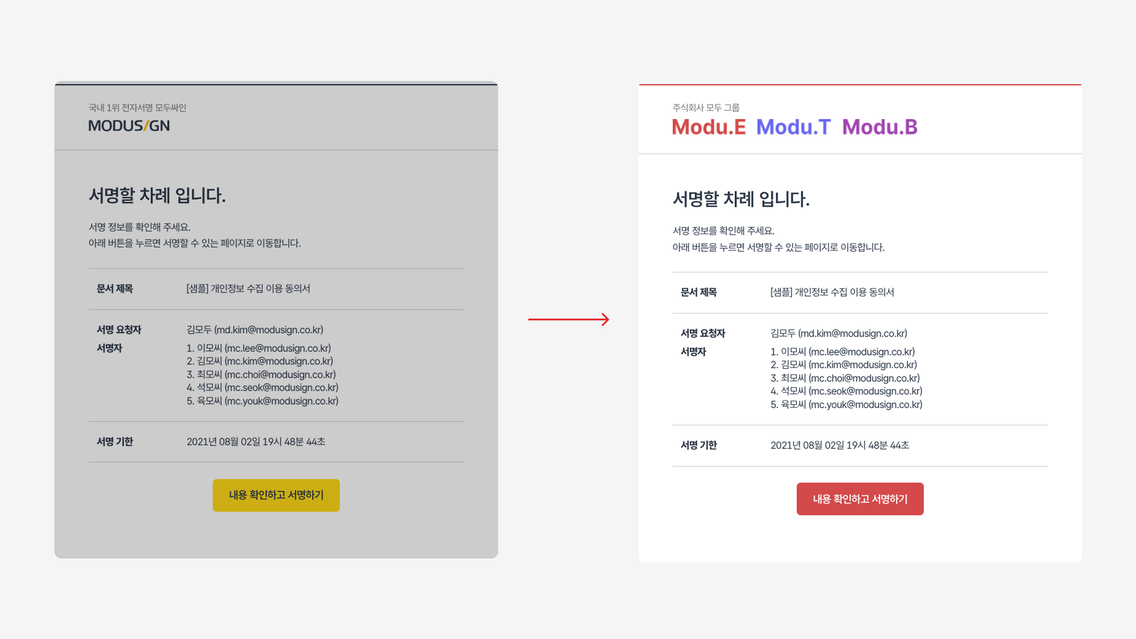- 그룹사 통합 계정에서 각 계열사별로 다른 브랜드를 적용하여 서명 요청 발송